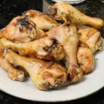 Куриные голени выкладываем в удобную для маринования посуду. Приправляем солью и черным перцем, втираем руками в голени. Добавляем соевый соус и лимонный сок. -