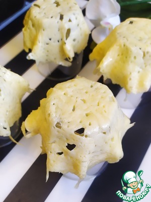 Через несколько секунд поддеть сыр лопаткой, и быстро накрыть им дно перевернутого стаканчика, немного прижать руками, придав сырной корзинке форму. Когда сыр полностью остынет, аккуратно снять корзиночку со стаканчика.
