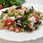 Фету раскрошить на крупные кусочки и добавить в миску. Перемешать.