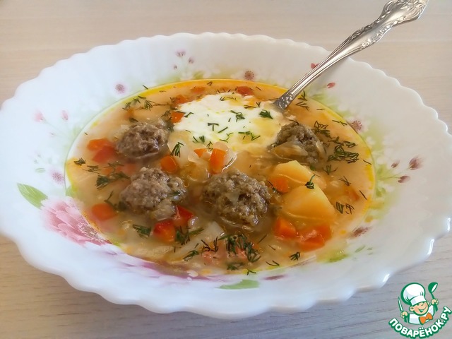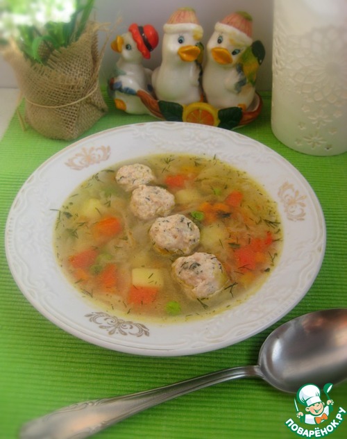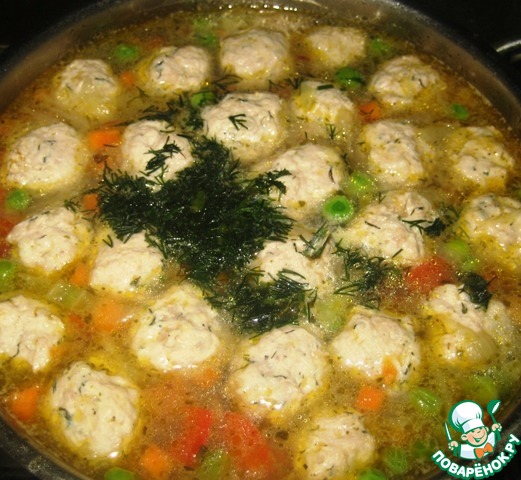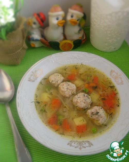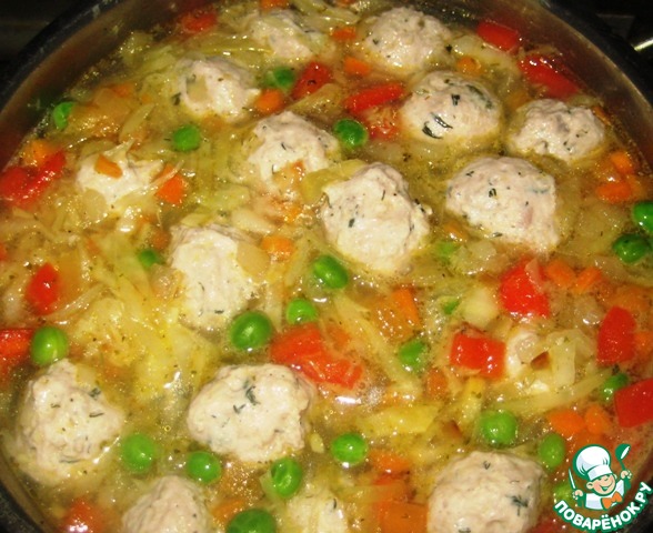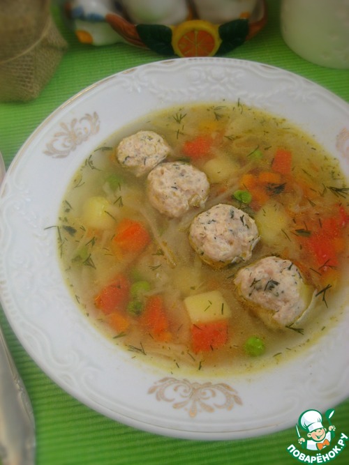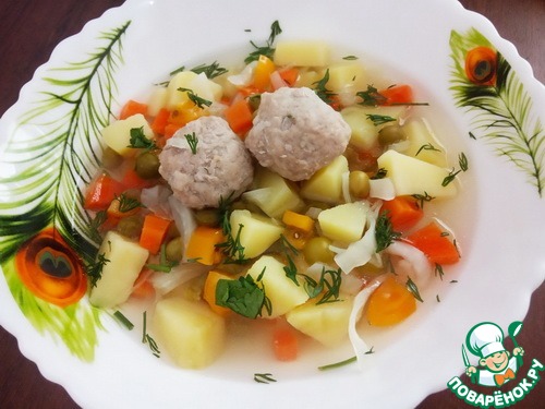 Рецепт «Овощной суп с куриными фрикадельками»: