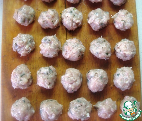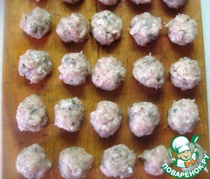 Сформировать из фарша небольшие фрикадельки (у меня получилось 25 шт.) и убрать их в холодильник.