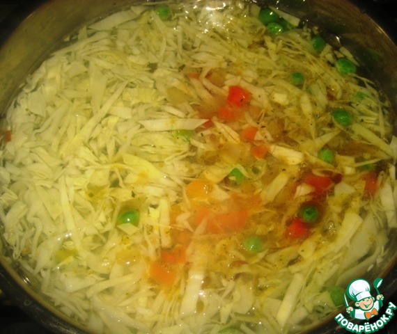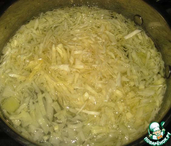 Когда картофель уже будет практически готов, отправить в кастрюлю капусту, дать закипеть, уменьшить огонь.