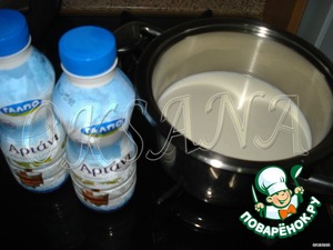 - Молоко (+ 0,5 стак. для крема + 2 ст.л. для глазури) — 0,5 л