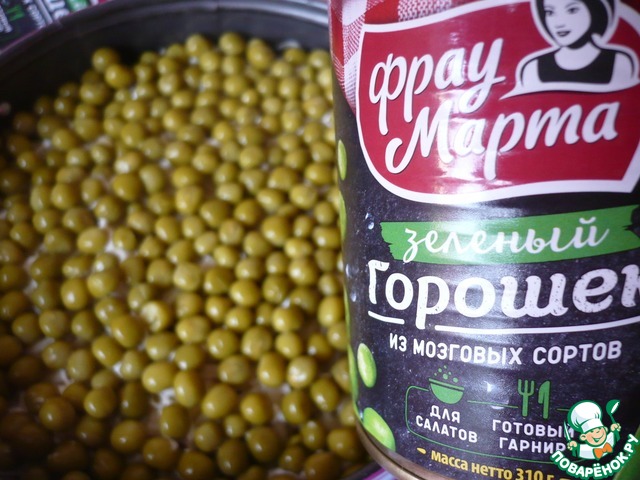 - Горошек зеленый (консервированный ТМ "Фрау Марта", масса горошка - 186 г) — 1 бан.