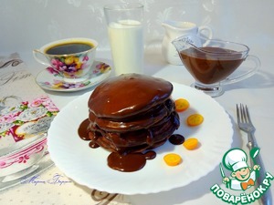 В рецепте немного сахара, и блины получаются не очень сладкими, но это компенсируется подачей к ним шоколадного соуса/сиропа, сгущенного молока или джема. -