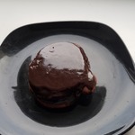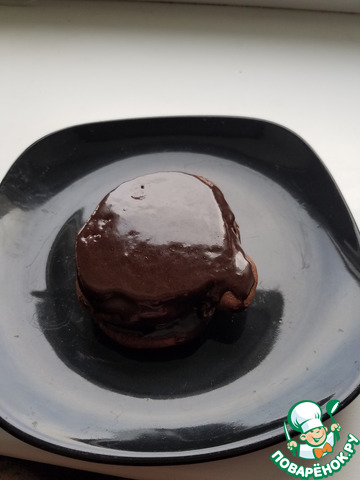 Параллельно приготовить Шоколадный соус. В маленьком сотейнике нагрейте 100 мл молока или сливок (любой жирности), почти до кипения, снять с горелки. Добавить 60-100 г нарезанного шоколада, дать постоять 2 минуты. По истечении этого времени перемешать до создания гладкого шоколадного соуса.