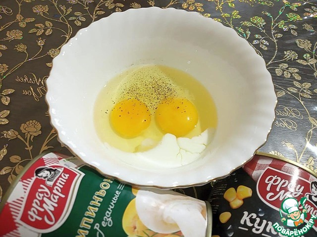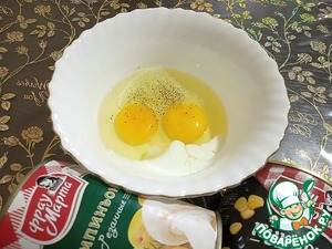 Яйца, молоко, соль и перец слегка взбиваем вилкой.