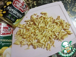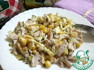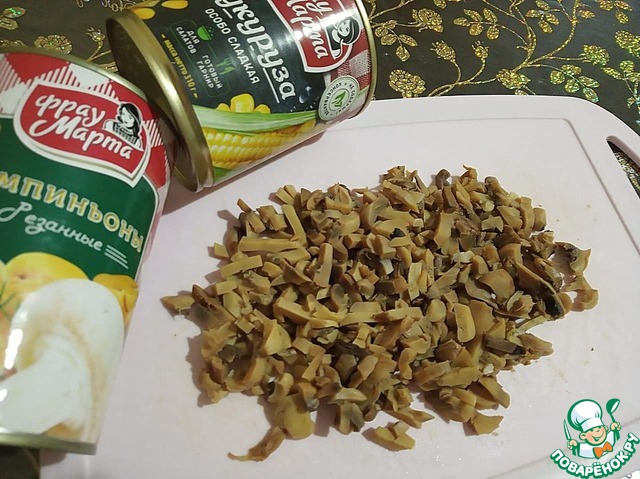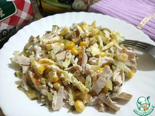 Вкусный, насыщенный и лёгкий салат из индейки и овощей (ТМ Фрау Марта кукуруза и шампиньоны).