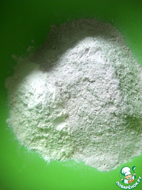 В миске соединить ржаную и пшеничную муку, добавить соль. Перемешать.