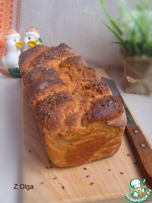 Сделать надрезы острым ножом, чуть смазать верх хлебушка водой и присыпать семенами льна (по желанию).