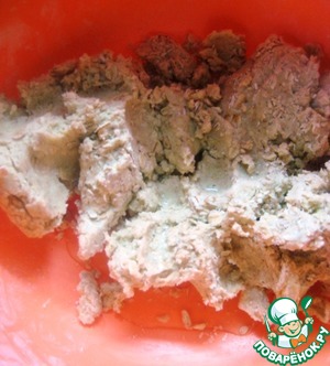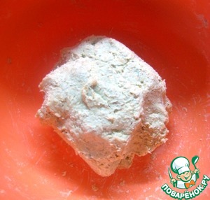 Влить 1-1.5 ст. л. холодной воды и собрать тесто в шар.