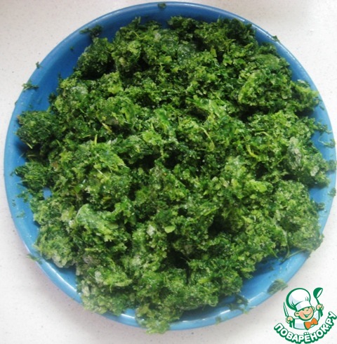 Подготовить шпинат (использовала замороженный, предварительно разморозила).