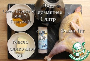Заливам вином. Ставим на 12 часов в холодильник, переворачиваем фазана несколько раз чем чаще тем лучше.