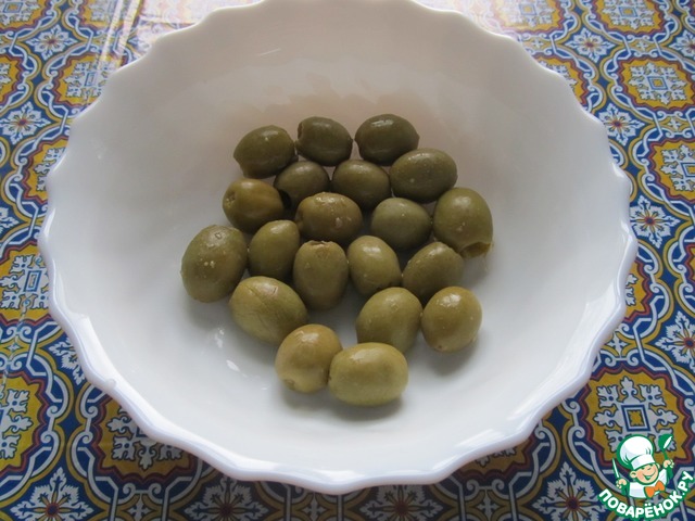 Поскольку оливок была маленькая баночка, то продуктов взяла вполовину меньше. -