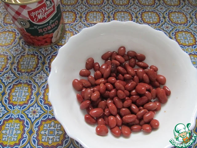 Фасоль, в данном случае "Лобио по-грузински" ТМ Фрау Марта, процедить и промыть.