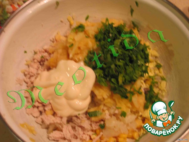 - Майонез (сметанка или йогурт (на Ваш вкус) для заправки салата)