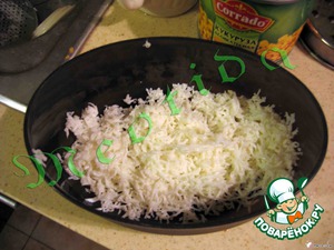 Смешиваем в однородную массу фарш, кукурузу, желтки, капустку, зелень, яблоко, 2 зубчика чесночка (измельченные), картошку и заправляем слегка майонезом. -