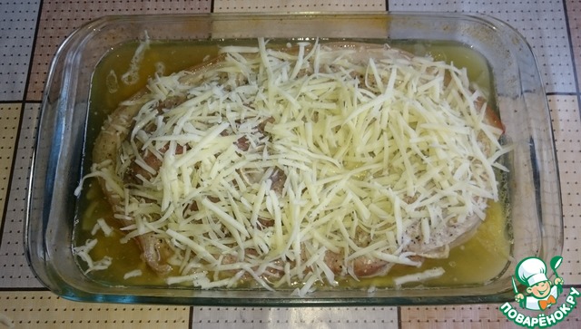 Посыпаем мяско натёртым сыром и отправляем в духовку ещё минут на 20.