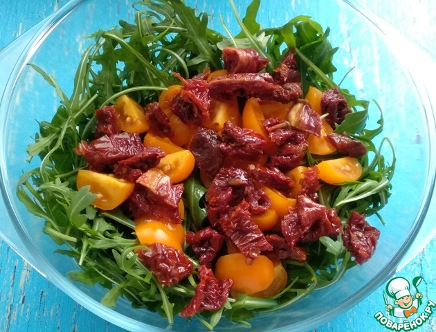 Рецепт «Салат с рукколой и куриной печенью»: