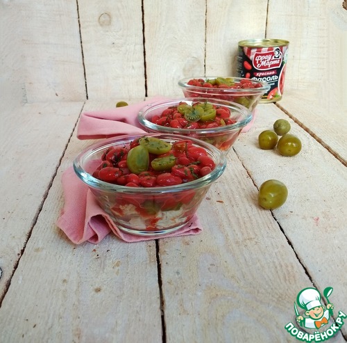 - Фасоль консервированная (ТМ Фрау Марта ( в томатном соусе)) — 1 бан.