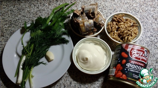 Ингредиенты для «Салат с фасолью и сайрой»:
