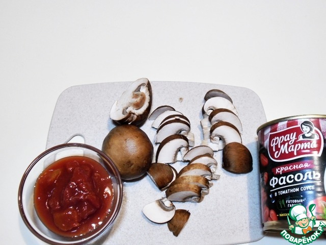Я приготовила это блюдо с использованием "Красной фасоли в томатном соусе" от ТМ Фрау Марта, для вареников взяла обычный магазинный творог жирностью 5 %.