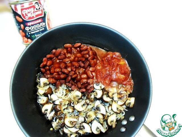 Следом добавить фасоль, которая уже заправлена всеми специями, нежная и с замечательным вкусом.