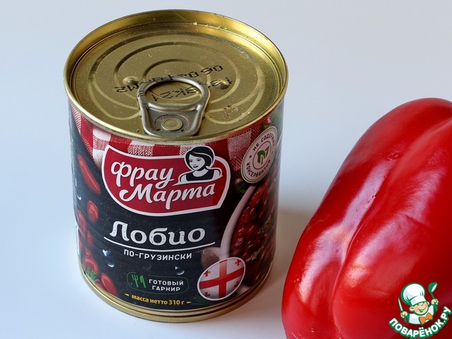 - Фасоль консервированная (у меня фасоль ТМ "Фрау Марта" Лобио по-грузински) — 1 бан.