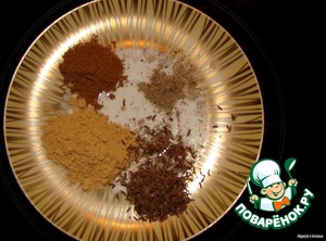Смешать все пряности (укроп, кориандр, имбирь, перец, соль)