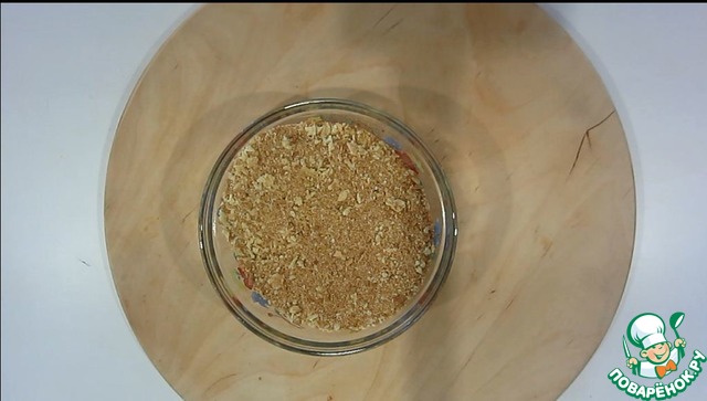 Из обрезков делаем крошку, в дальнейшем будем обсыпать ею торт.