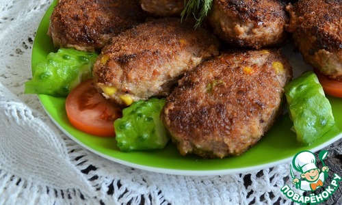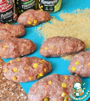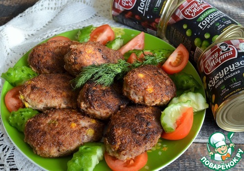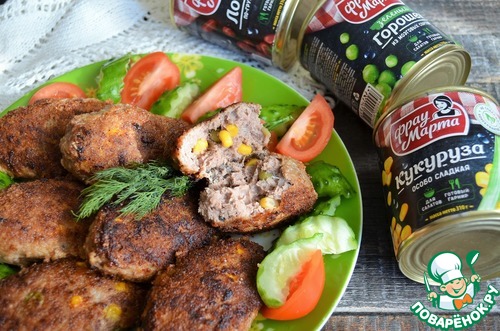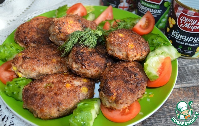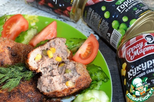 У каждой хозяйки из 90 х есть рецепты - выручалочки, когда из ничего надо соорудить вкусно; рецепты, когда и продуктов то у нас понемногу... Вот и у меня есть такие. Сегодня предлагаю один из них. Тогда, готовя салаты, я обязательно "прятала" по 1-2 ст. л. кукурузы, горошка, чтобы приготовить с ними котлеты. Мои маленькие дети их очень любили, называем мы их "конопушечки" или"зразы наизнанку". Угощайтесь.