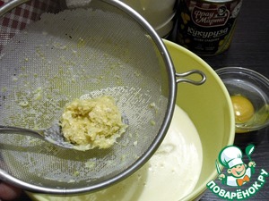 Чтобы удалить "жмых", так тесто будет нежнее, но можно и не процеживать, если вам нравится более грубоватая структура теста.