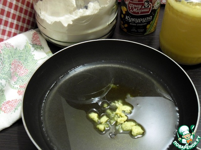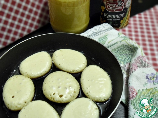 Для кукурузных оладьев необходима кукуруза консервированная. Предлагаю использовать проверенную, качественную и вкусную от ТМ Фрау Марта.