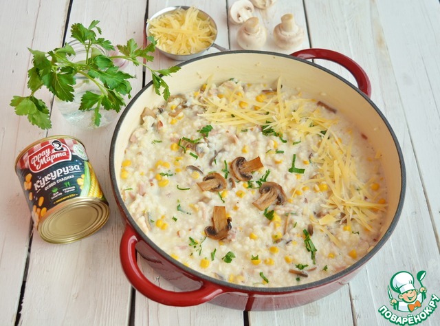 Рецепт «Ризотто с грудинкой, грибами и кукурузой»: