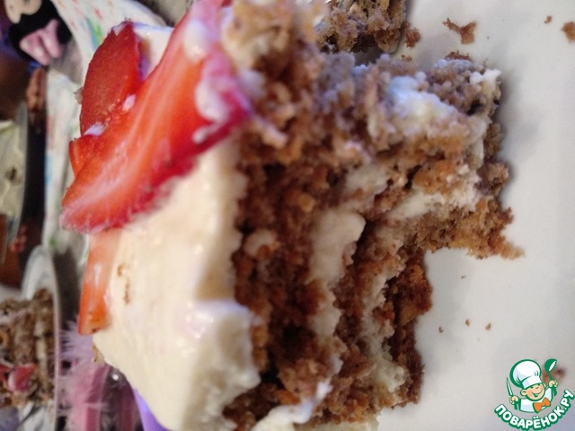 На фото торт на основе морковного пирога с кремом из маскарпоне и сгущённого молока.