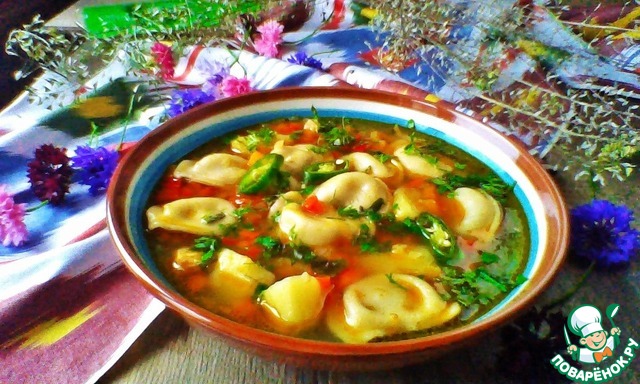 Рецепт «Суп с пельменями в узбекском стиле»:
