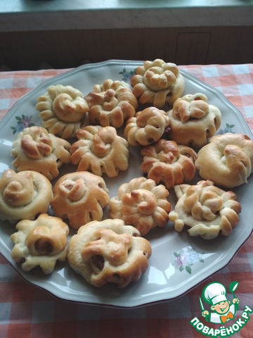 Выпечь булочки до румяной корочки. Они у меня получились разными. Я даже с вареньем попробовала их сделать. Немного потекли, лучше густое повидло использовать. В целом мне понравились и булочки, и забавы с тестом. Когда же ещё забавляться, если не на Масленичной неделе!!!