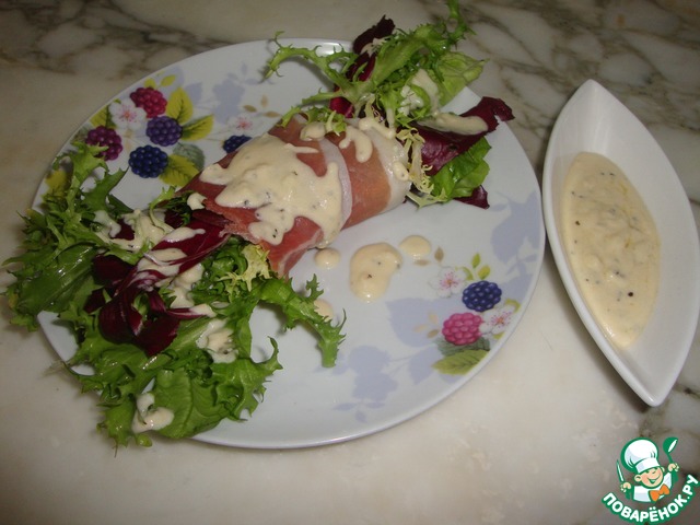 Салат в пармской ветчине с сырным соусом