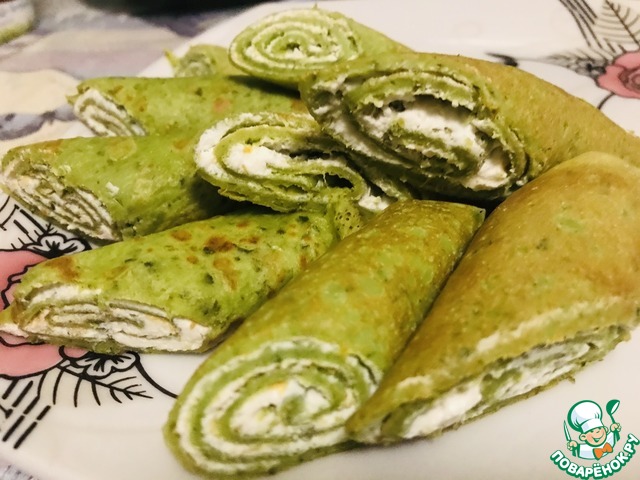 Рецепт «Закусочные шпинатные блинчики с начинкой»: