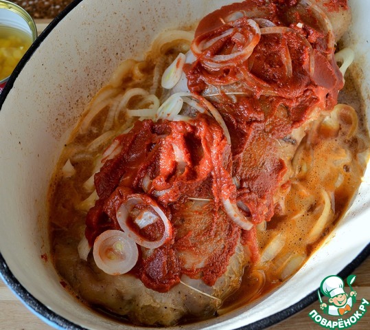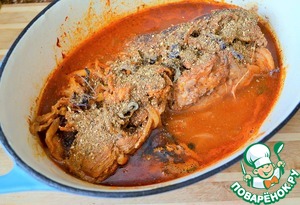 Тушить ещё 1 час, за 5 минут соус довести по вкусу на соль. -