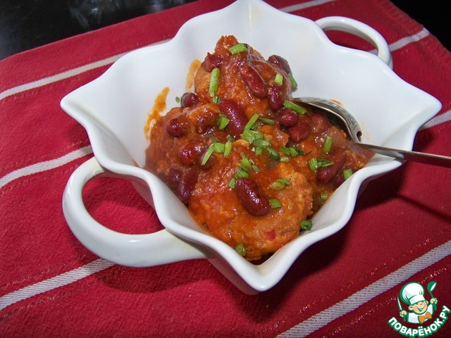 [+4]Фрикадельки из куриных грудок , фасоль белая, остальное по рецепту.