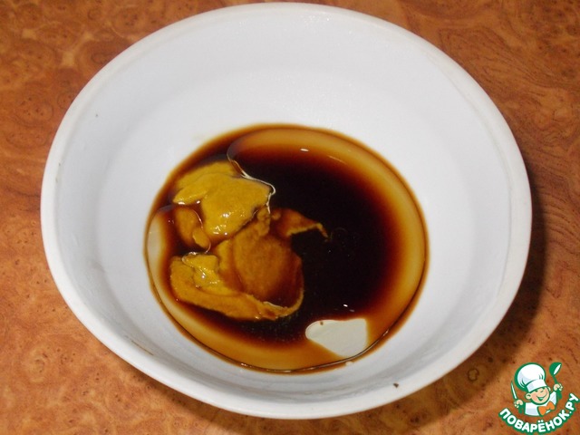В пиалочке смешиваем соевый соус, горчицу и растительное масло.