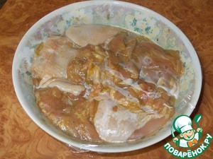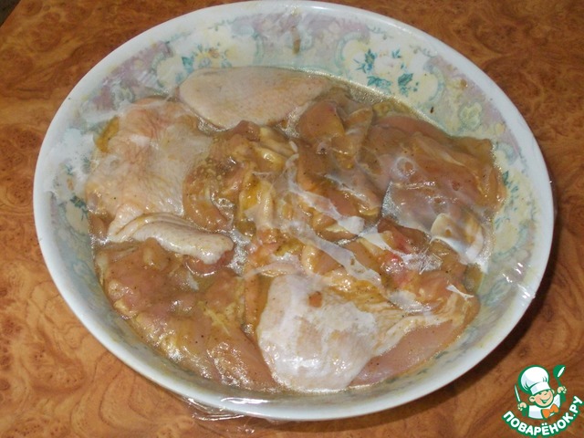 Закрываем миску с бедрами пищевой пленкой и ставим в холод. Маринуем от получаса до суток...