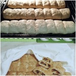 Перекладываем "колбаски" на противень, застеленный пергаментом, швом вниз и надрезаем каждую на шесть пирожков.