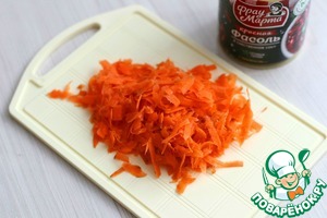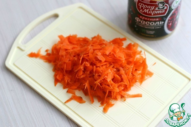 Пока варится картофель, морковь (1 шт.) нашинковать на терке с крупным сечением.