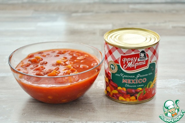 - Фасоль консервированная (овощная смесь "Мехico" ТМ "Фрау Марта") — 1 бан.