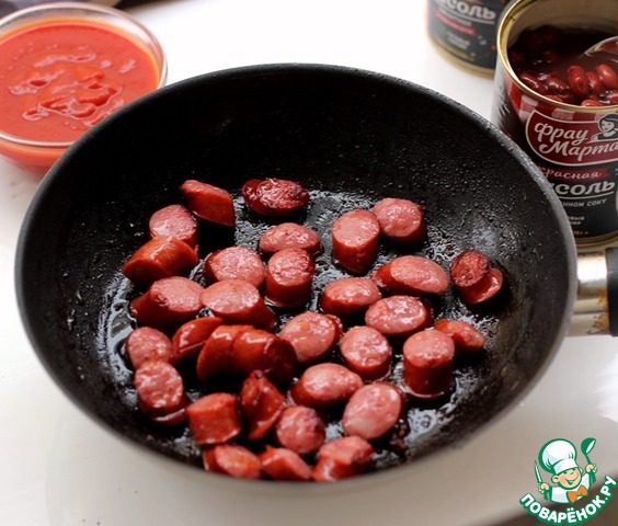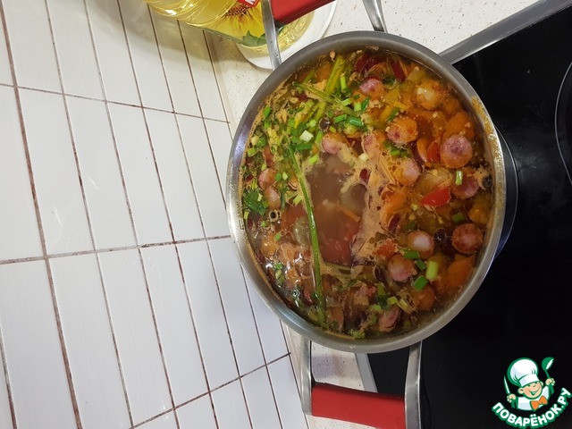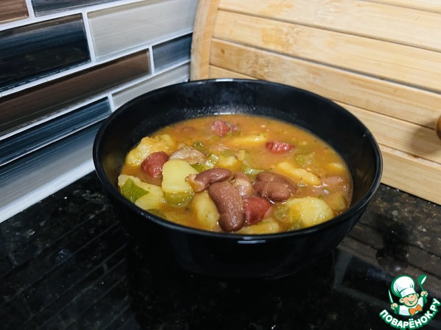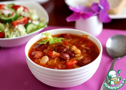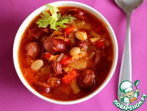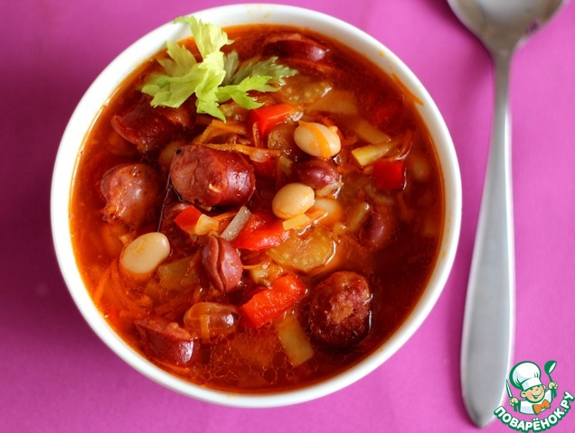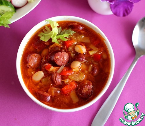 Рецепт «Фасолевый суп с охотничьими колбасками»: