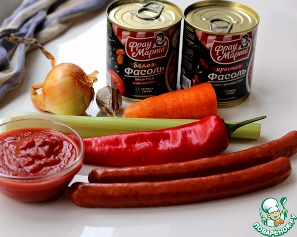 Ингредиенты для «Фасолевый суп с охотничьими колбасками»: