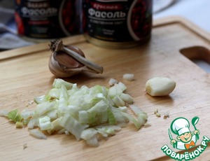 Нарезать лук, измельчить чеснок. Разогреть в толстостенной кастрюле растительное масло и сделать зажарку.