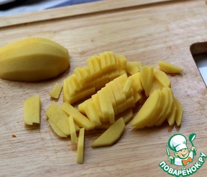 Охотничьи колбаски нарезать на кусочки